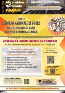 Il 29 febbraio dalle ore 9:30 si svolgerà il sesto appuntamento nazionale dell’Assemblea PdM e PdM. Un percorso autorganizzato e democratico dei Macchinisti e dei Capitreno che da